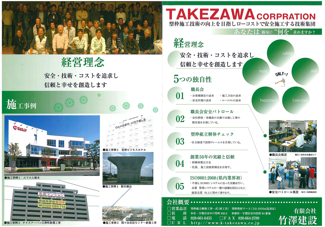 竹澤建設は、昭和41年創業の型枠工事専門会社です。